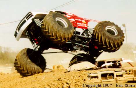 Not hitting the cars with both front tires can cause some problems at 50mph. Mark Hall powered out of this near rollover and was able to advance to the next round of competition.
