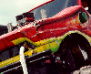 Truck Facts: 1997 Ford with GTS Fiberglass body and a custom nose. Flashing eyes, and snake fangs are highlited by a custom "scaled" paint scheme. The engine is a 572ci Ford Hemi.