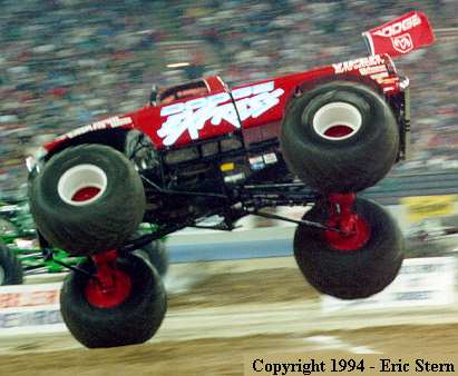 The Dodge Express gets a little sideways coming off of the last set of cars.