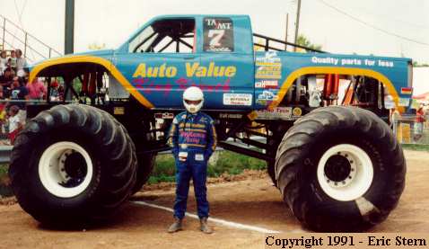 Owner/Driver Scott Stephens displays his new full-face race helmet. Two months before this picture was taken, Scott had a string of bad luck - rolling his truck 3 times in 4 weeks. Two of those crashes were on the same weekend, one day after another in Canfield, Ohio ! The new helmet will protect his face much better from flying debris while racing, and during a crash.