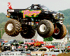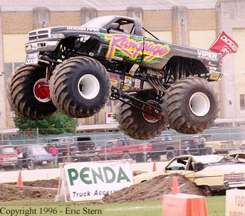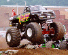 Truck Facts: 1995 Dodge Ram. 572ci Chrysler Hemi with 1500hp. 3 speed Lenco transmission, ZF axles, 66x43x25 Goodyear custom cut tires. 3 months build time at over $ 125,000.00 total cost. This truck was built by Fred Shafer and sold to Richard and Shirley in mid 1997. Paul Shafer purchased the truck from the Pattersons in 2002.