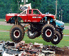 Motorsports has its ups and downs, and Monster Truck Racing is no exception. Every one has to pay the price from time to time for being a racer, and even 3 time World Champion Fred Shafer knows that. Anything from electrical, mechanical, physical or weather related problems can affect the trucks. Sometimes its a drivers error, like red lighting, shifting incorrectly or choosing the wrong set of gears. Other times a bad bounce, or a slippery muddy track sends you out of bounds quicker than you can correct the truck. Then there are always those unforseen part failures and rollovers that seem to come at the worst times. Regardless of what the problem was, Fred Shafer learned from his mistakes, made his parts better and stronger so he would be more competitive in the future.