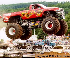 The season ended with a bang in Indianapolis, Indiana at the PENDA points series Fall Nationals. Shafer dominated the first days show, taking the win. The final day got even better as Fred set the fastest time ever by a Monster Truck on a 200ft competition track. He ran a 4.59 second pass to Bigfoot's loosing 4.86. It was an all Dodge final as Bearfoot went head to head with Rampage, giving Todd Frolik his second career victory by only .01 of a second. Bearfoot and Rampage finished 3rd and 4th in the 1996 season.