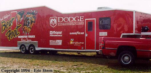 Top quality haulers made being on the road much easier for the Bearfoot crew. With enough space to sleep 5, this was their home away from home for many weeks out of the year. The Monster Truck and its tires would be stored at the back of the hauler, along with all the tools and spare parts. The trailers were also great advertisement for all the sponsors.